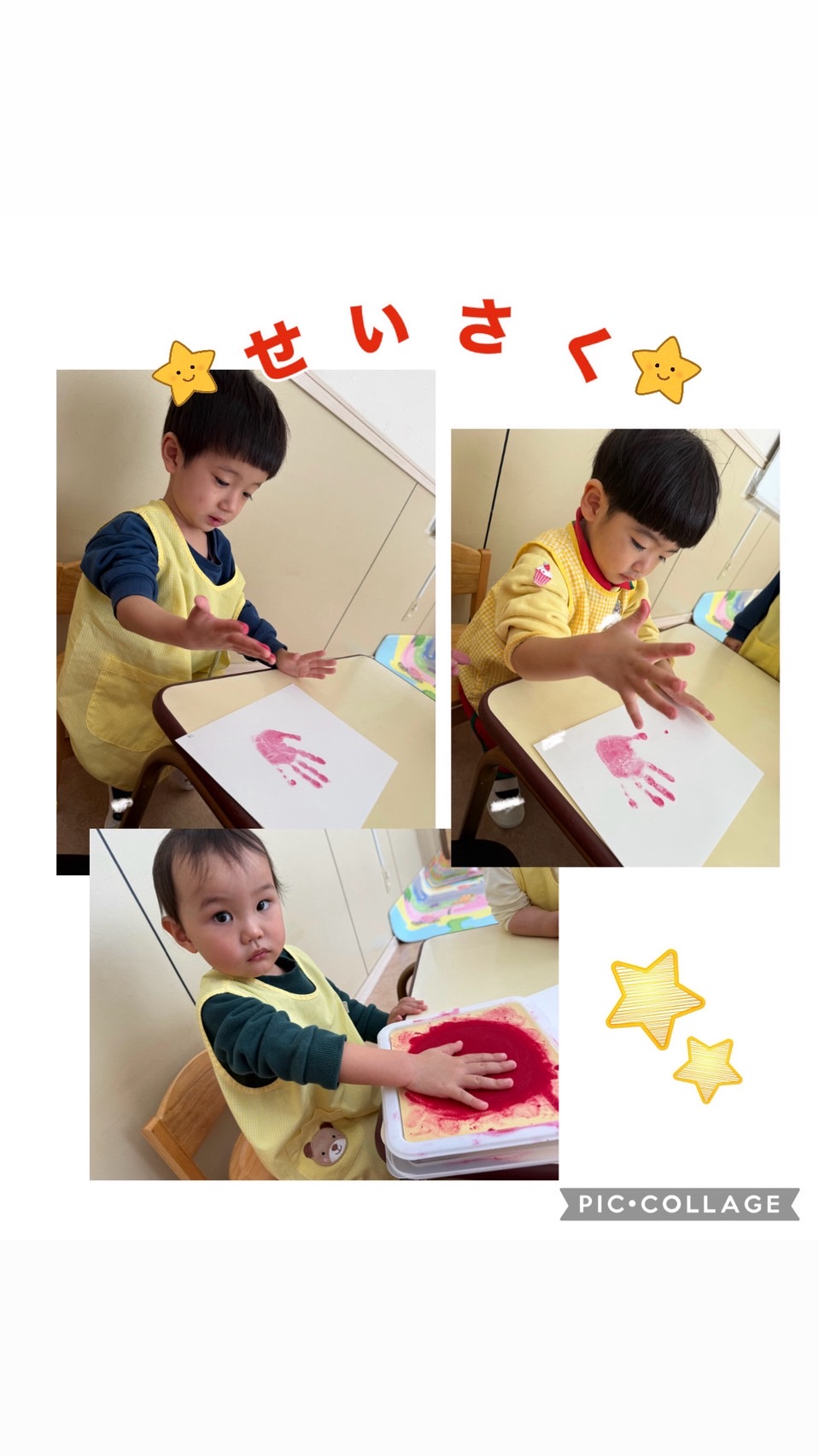 今日の制作は、手型とり。お友達の様子を見ながら挑戦!上手にできました。