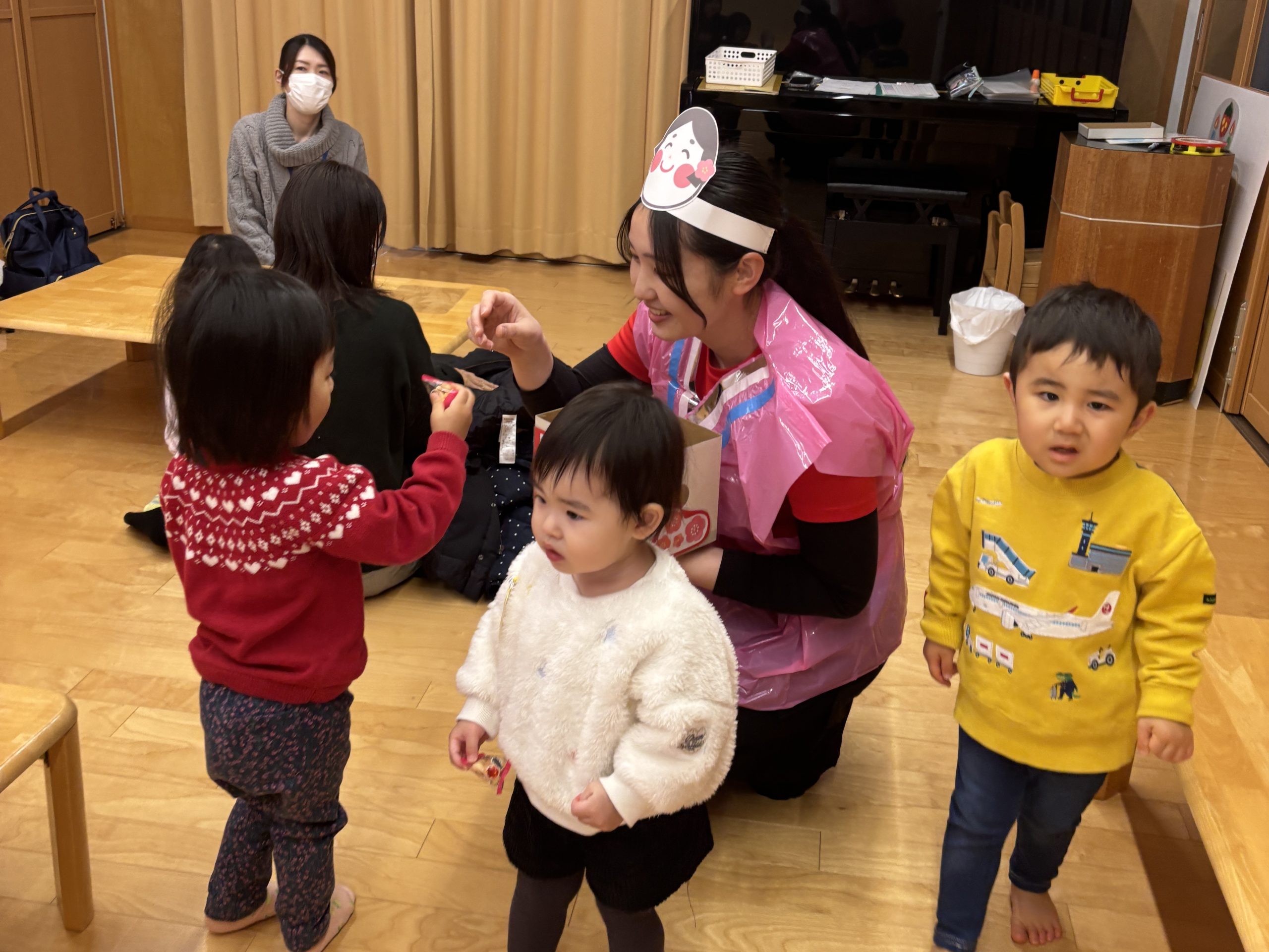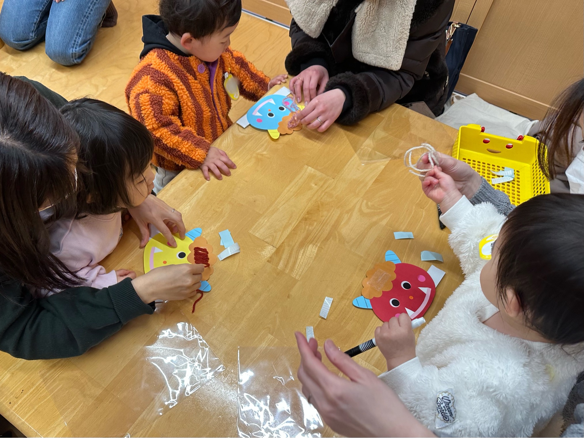 2026.02.02 全年齢共通 ぴよぴよランド 今日は今年最初のぴよぴよランドの日でした🐥♡ 今日の活動は、「まめまき」です🫘 まずは鬼のお面製作からスタート!シールをペタペタ貼ったり、毛糸を貼ったりしながらオリジナルの鬼さん作りを楽しみました♫ お面をつけたあとは、みんなで豆まきごっこ👹ちょっぴりドキドキする姿もありましたが、最後はお福さんからプレゼントをもらってニコニコ笑顔🎀☺️ 今年もみんなが健康で元気に過ごせますように…🍀😌 ぴよぴよランド 副担任 前の記事 すべての一覧へ戻る