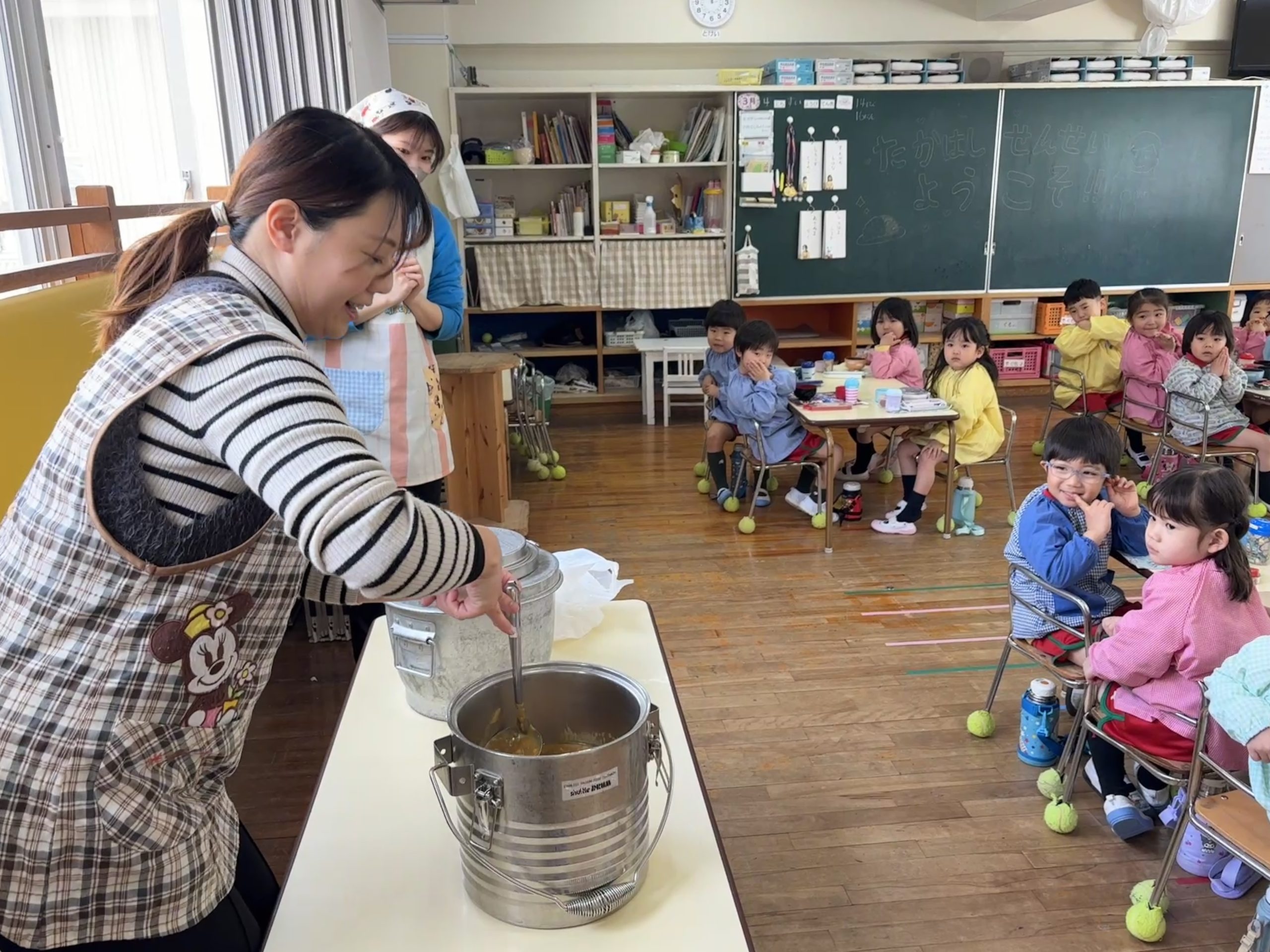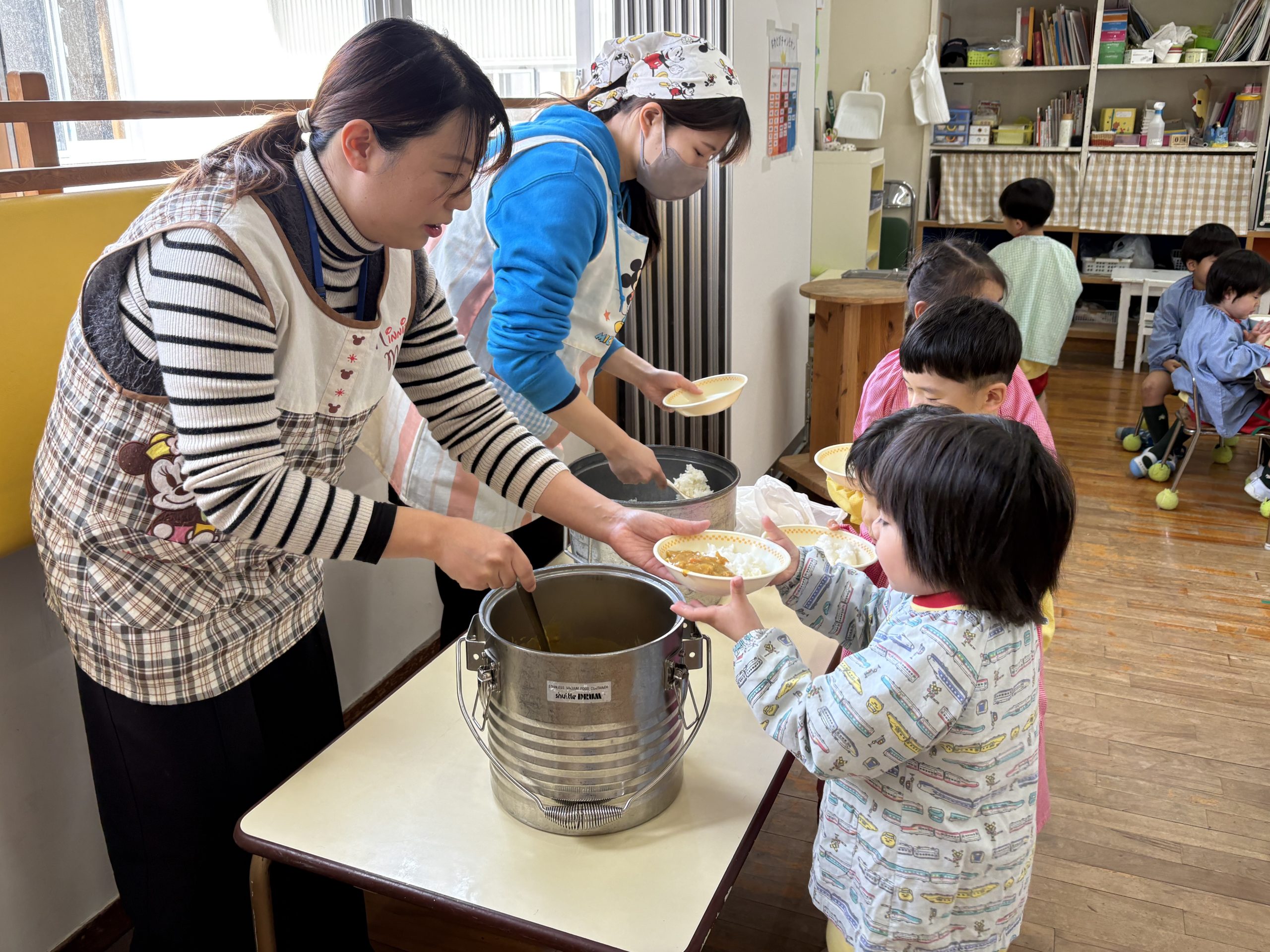 読み聞かせのあとは、お待ちかねの配膳です🍚