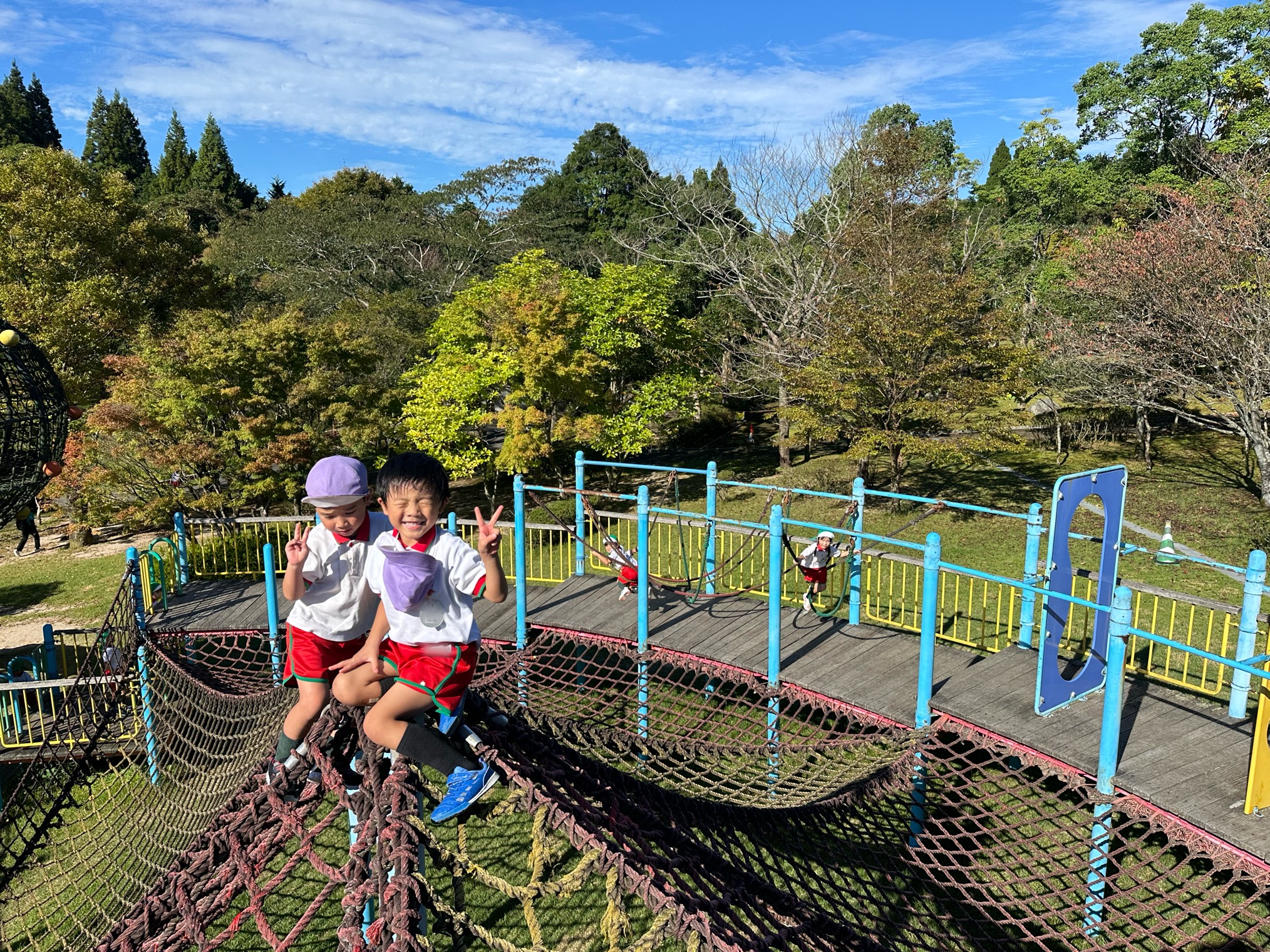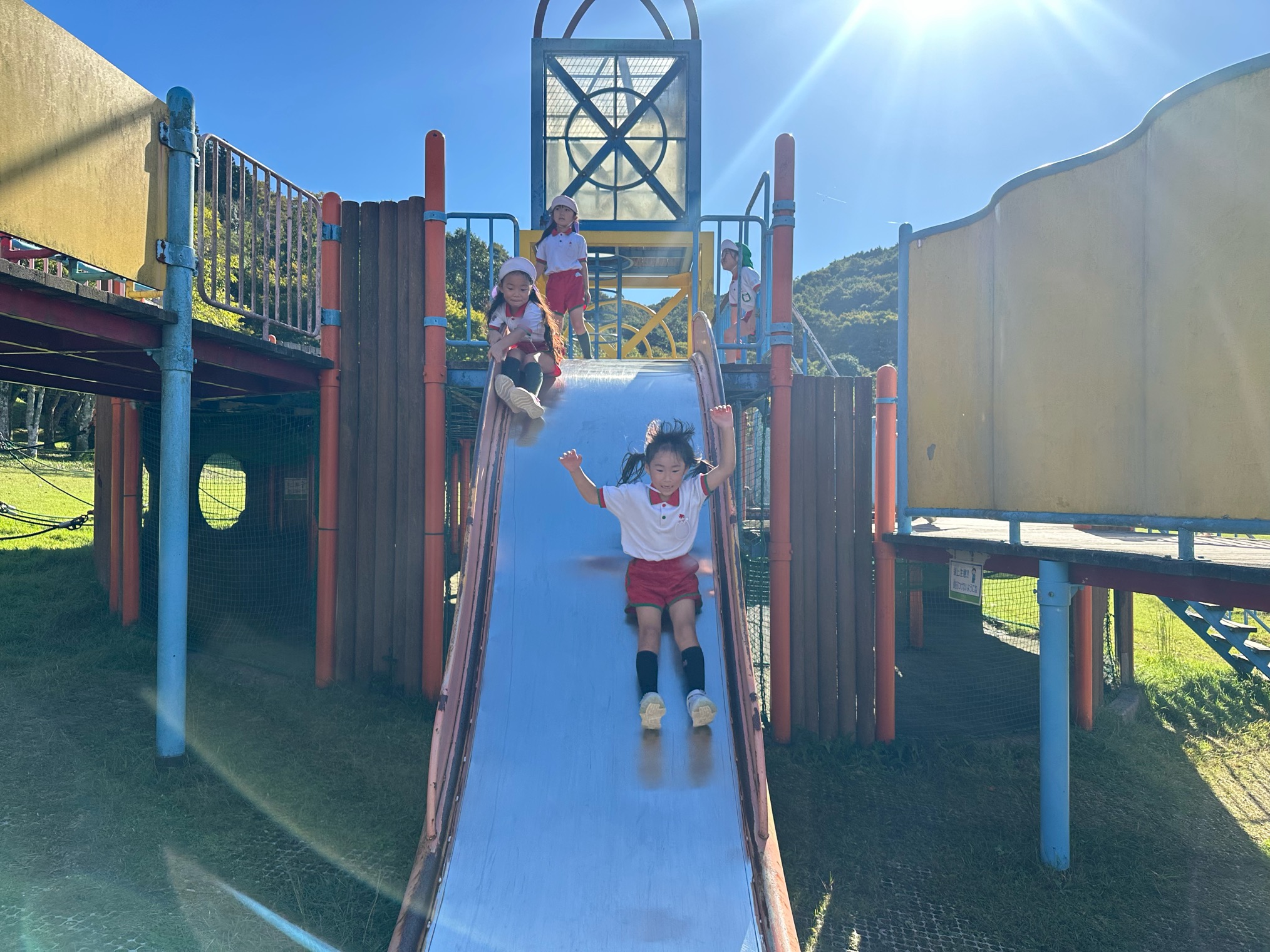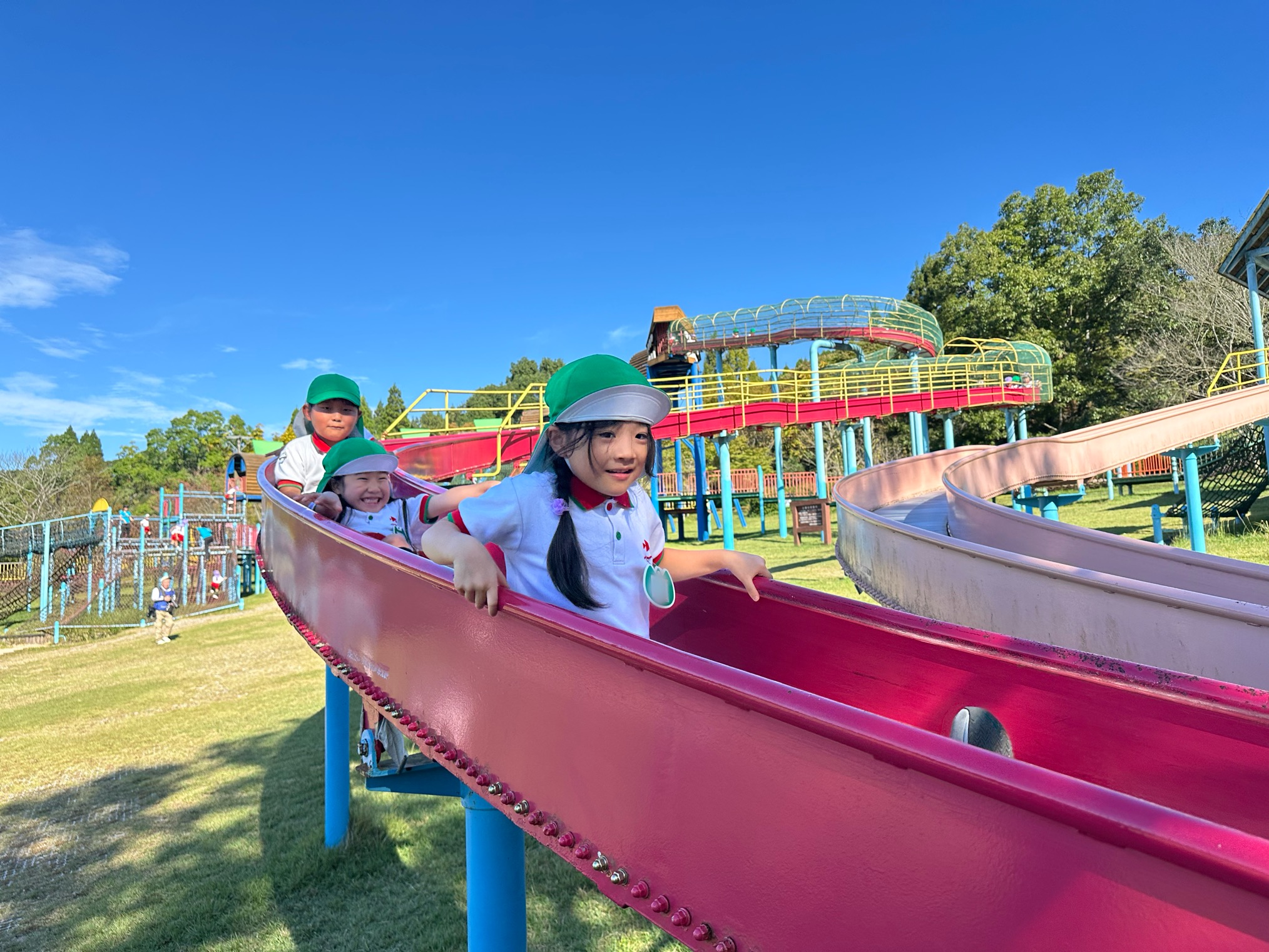 2025.10.17 全年齢共通 3.記念の森 いよいよ記念の森に到着〜!天気は快晴です!!目の前には大きな恐竜コースターが登場!!「わー!恐竜だー!!」「早く乗りたい!!」と大興奮です^^ 風を切ってコースターを楽しんだり、他の遊具で思いきり体を動かしたりと、笑顔がたくさん見られましたよ😊 まだまだ続くキャンプの時間、思いきり楽しみます♪年長 副担任 前の記事 すべての一覧へ戻る 次の記事