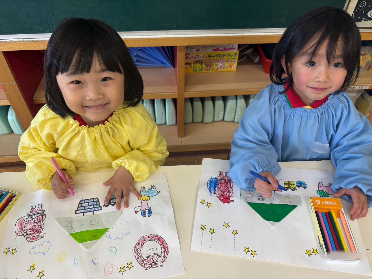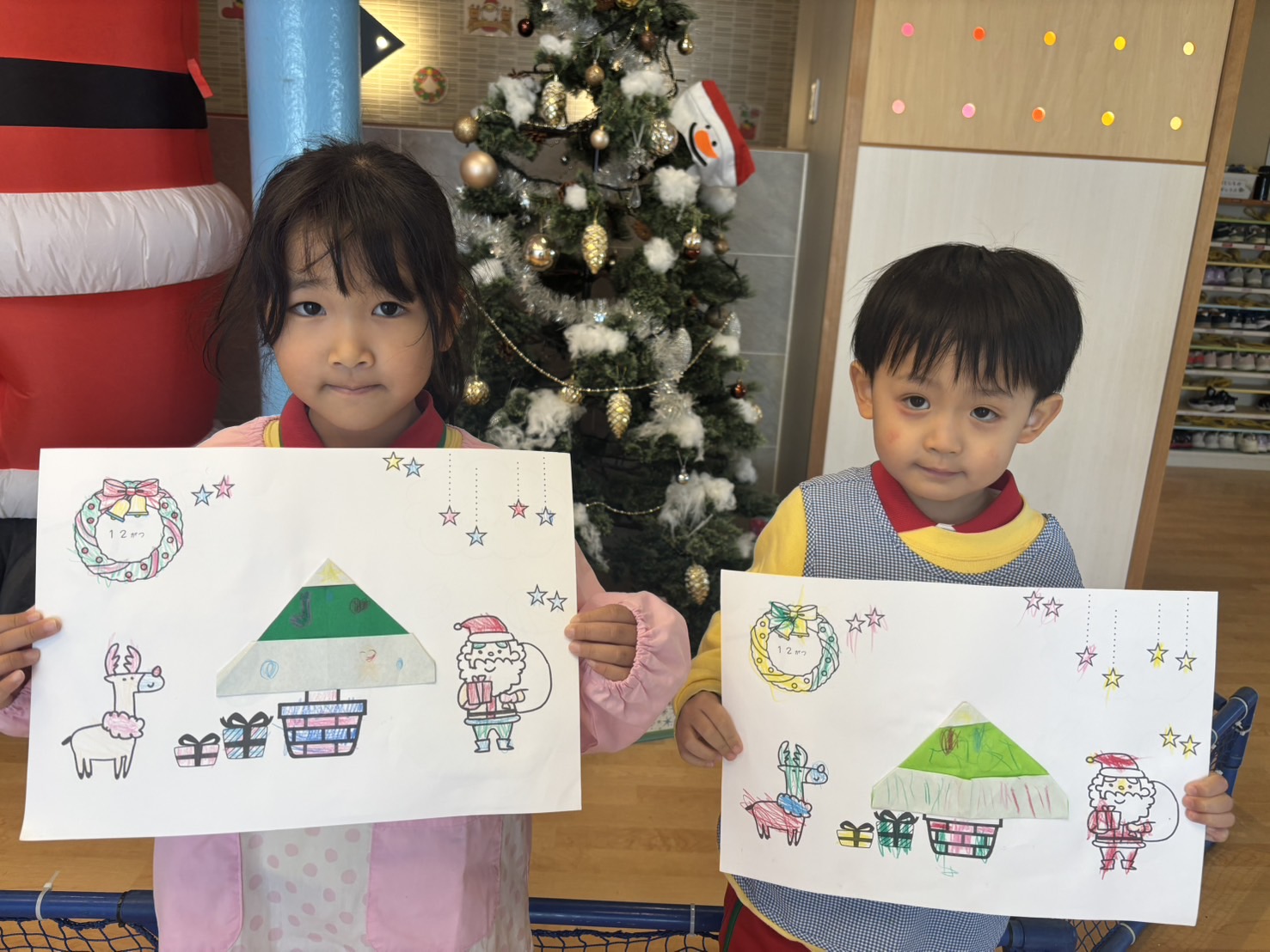 みんなでクリスマスツリーを折りました!!