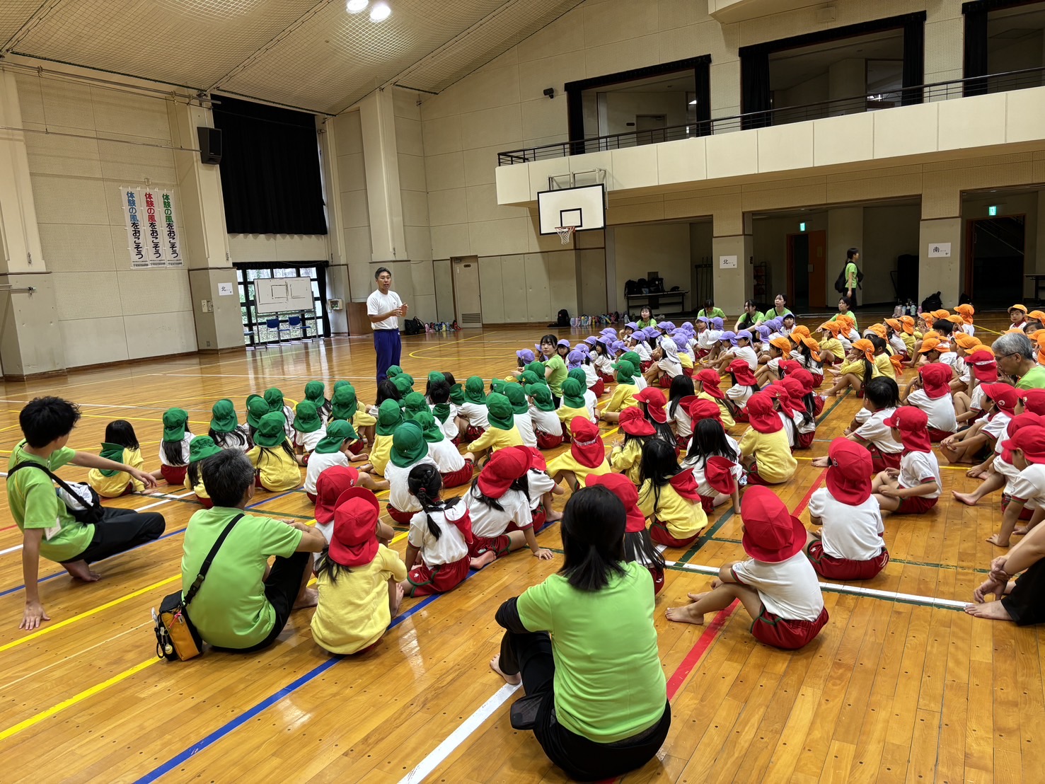 2025.10.18 全年齢共通 11.レクリエーション あいにく、雨が降り始めたので、プレイホールで武田先生とゲームをしました!😊お友達と体を使って遊んだりクラス対抗でじゃんけんサッカーをしましたよ!✌️⚽️最後には全員リレーで締めくくりました!💪年長キャンプも残すところあと少しですが沢山の思い出を持って帰りたいと思います✨年長組 副担任 前の記事 すべての一覧へ戻る
