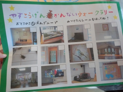 2022.07.21 年長 4.館内ウォークラリー 続いては"館内ウォークラリー"です!グループに別れて写真と同じ場所や物をみんなで探します!「どこかな~??」「あ!あったよ!」と嬉しそうな声がたくさん聞こえていますよ。そして写真と同じものを見つけたらシールを貼っていきます!さすが年長組さん!お友達と協力しながら上手に見つけることができました。より一層お友達との絆が深まった館内ウォークラリーでした(*^^*)次は何かな~??雲組 担任 前の記事 すべての一覧へ戻る 次の記事